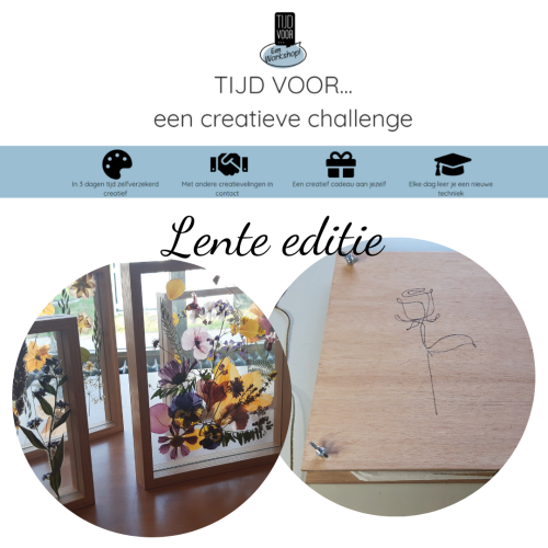 De challenge duurt 2 weken. In deze periode ontvang je op de maandagen een mail met een video tutorial en op de woensdagen een verdiepende mail rondom creativiteit als zelfzorg.